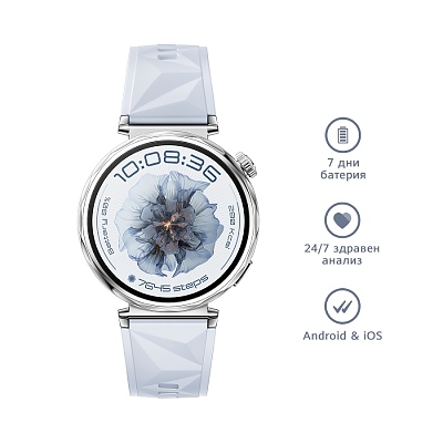 Часовник Huawei Watch GT5 Jana-B19FC, 1.32", Amoled 466x466 PPI 352, , BT5.2 BLE/BR/EDR, 5ATM, 524mAh, Screenshot sharing, support message input, message notifications, Battery life up to 7 days,Compatible with iOS and Android devices, Blue Fluoro