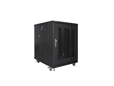 Комуникационен шкаф Lanberg rack cabinet 19" free-standing 15U/600x800 (flat pack) with mesh door black
