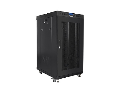 Комуникационен шкаф Lanberg rack cabinet 19" free-standing 22U/800x800 (flat pack) with glass door lcd black v2