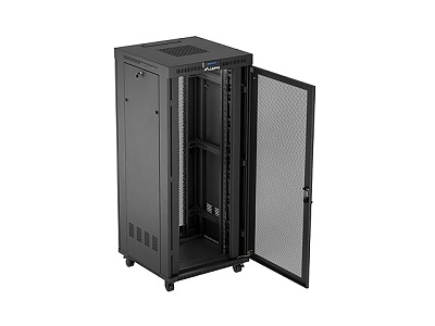 Включени аксесоари: M6 screws, Front lock, Side locks, Rear lock, Grounding cable, Wheels with brake, Legs, Ventilation panel (4 fan's), Thermostat, Vertical cable management panel x2