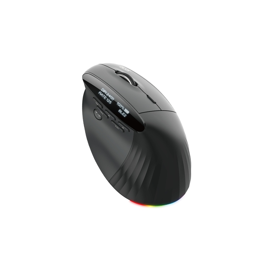Мишка Acer Smart Fit Wireless Mouse, RF 2.4 GHz dongle, Bluetooth 5.0, Wired , 10 Buttons, DPI 8000, 90g , Black with RGB strip