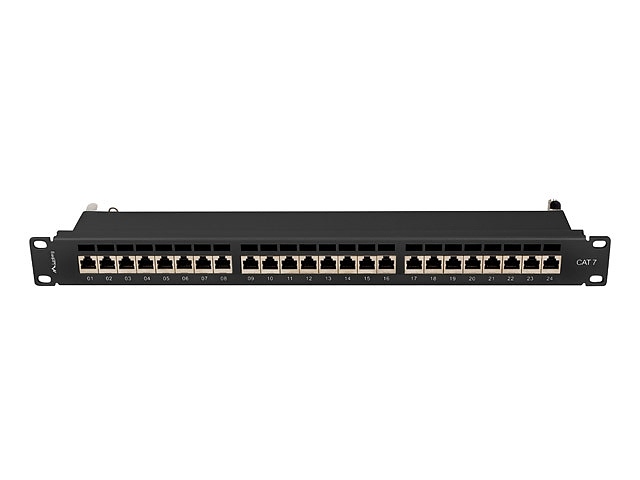 Пач панел Lanberg patch panel 24 port 1U 19" CAT.7 ftp with cable organizer shielded black