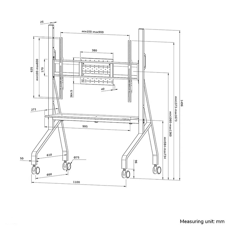 Регулируема дължина: Width: 110 cm, Depth: 66 cm, Height: 150 cm, Height adjustment: 106 - 136 cm, Adjustment type: Manual