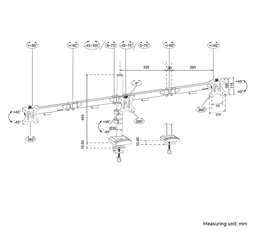 Наклон: -45° ~ 45°