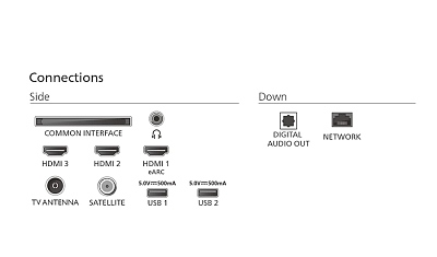 Изводи за свързване: 3 HDMI, 2 USB 2.0, RJ-45, 3.5 mm audio jack, Digital audio optical out