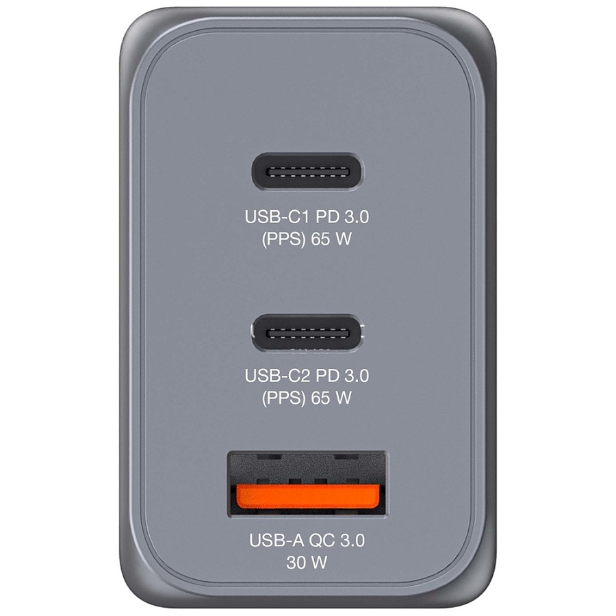 Мощност, W: Total Output: 65W max, USB-C1/C2 (PPS) Output: Max PD 65W (when used alone) PPS mode Max 45W, USB-A QC 3.0 Output: Max 30W (when used alone)