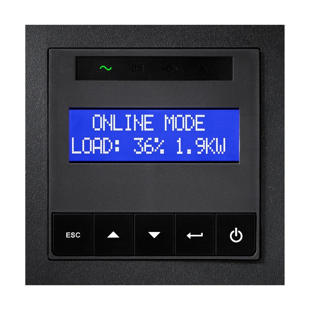| Тип изводи | Terminal block + 8 IEC C13 (10A) sockets + 2 IEC C19 (16A); Input: Terminal block (32A): Communication: USB port (HID compliant), Serial port (RS232), Mini-terminal block for remote power off, One slot for optional communication card |