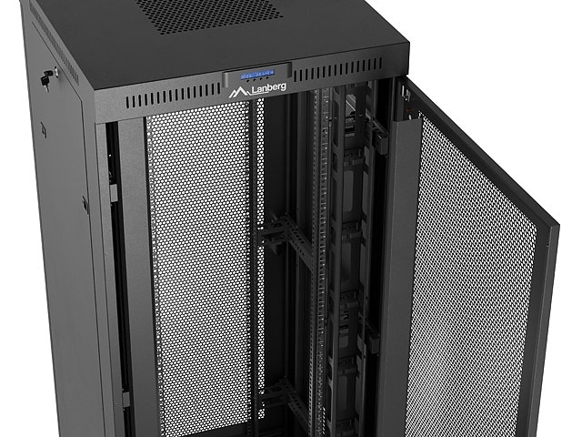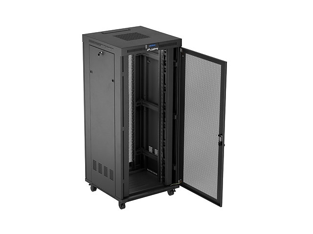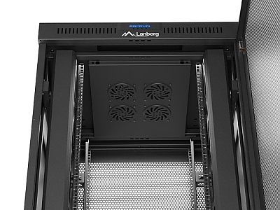 Включени аксесоари: M6 screws, Front lock, Side locks, Rear lock, Grounding cable, Wheels with brake, Legs, Ventilation panel (4 fan's), Thermostat, Vertical cable management panel x2