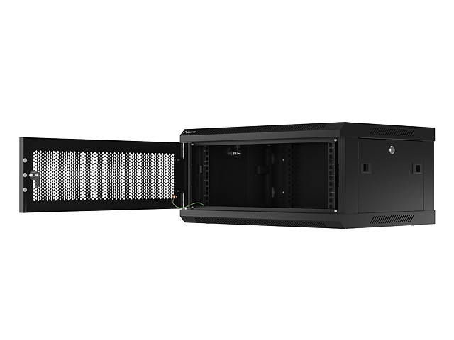 Комуникационен шкаф Lanberg rack cabinet 19" wall-mount 4U/600x450 with perforated door black (flat pack)