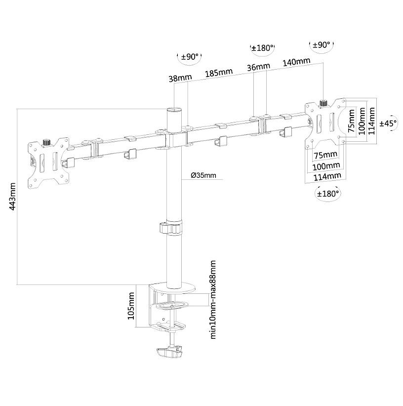 Други: Desk clamp or grommet mount. An innovative cable management conceals and routes cables from mount to flat screen. Hide your cables to keep the workplace nice and tidy.