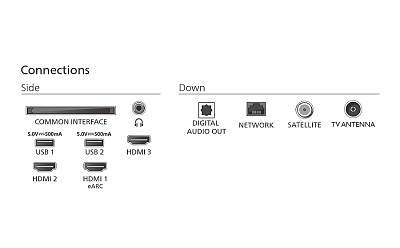 Изводи за свързване: 3 HDMI, 2 USB