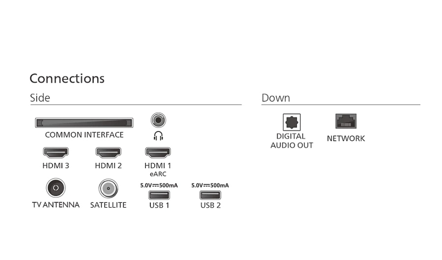 Изводи за свързване: 3 HDMI, 2 USB 2.0, RJ-45, 3.5 mm audio jack, Digital audio optical out